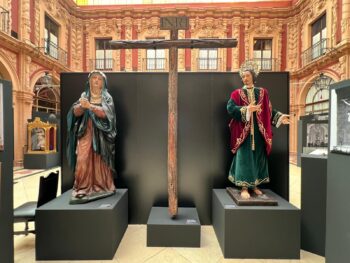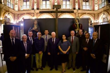Al acto de inauguración de la muestra, celebrado este jueves 3 de octubre, han asistido el delegado de Fiestas Mayores, Manuel Alés, el rector de la Universidad de Sevilla, Miguel Ángel Castro, el jefe de la Fuerza Terrestre, el teniente general Carlos Melero, el presidente del Consejo de Cofradías, Francisco Vélez, así como el concejal de Urbanismo, Juan de la Rosa, la delegada del Casco Antiguo, María Amidea Navarro, el delegado del Gobierno de la Junta en Sevilla, Ricardo Sánchez, la representante de la Fundación Unicaja, Sara Rodríguez, y numerosos hermanos mayores del Martes Santo, además de los de La Macarena, Santa Genoveva, Quinta Angustia, El Valle, El Baratillo y la hermana mayor de la Vera-Cruz de Olivares.