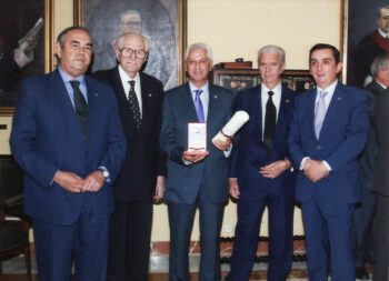 El 18 de junio siguiente, en el Paraninfo del Rectorado de la Universidad, de manos del Excmo. y Magnífico Sr. Rector D. Joaquín Luque, en presencia de antiguos Hermanos Mayores y numerosísimos hermanos invitados para la ocasión, se le hizo entrega al Hermano Mayor de tan alto honor en señal del respeto y colaboración recíproca de ambas instituciones que, cada cual en su ámbito y ambas en el común mundo universitario, han sabido comprender que desde sus planteamientos propios y sin renunciar a sus principios fundacionales, es posible la armonización de la Fe y la Razón, de la Creencia en lo sobrenatural y la Ciencia.