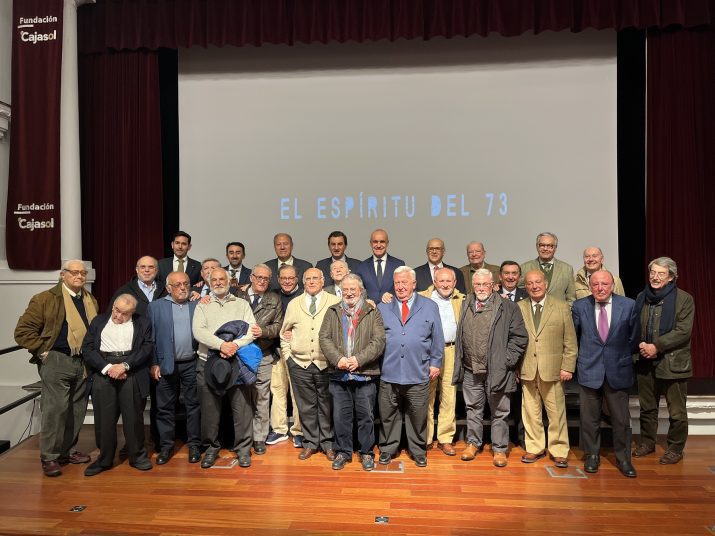 Presentado por el periodista Fran López de Paz, el acto de estreno de la película concluyó con una foto de familia de los integrantes de aquella primera cuadrilla sobre las tablas del salón de actos de la Fundación Cajasol.