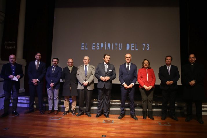 El hermano mayor de Los Estudiantes, Jesús Resa, agradeció la presencia del alcalde y de miembros de la Corporación Municipal en el estreno de ‘El espíritu del 73’. “Su presencia en este acto refrenda una vez más el apoyo de nuestro Ayuntamiento a la Semana Santa y a sus hermandades”. Resa aprovechó su intervención para lanzar un guante a la primera autoridad municipal: que Sevilla pueda contar con una calle dedicada a los “Hermanos Costaleros”. “Este colectivo de hermanos costaleros, por lo que ha aportado a la Semana Santa no sólo de Sevilla sino de toda Andalucía y España, sería merecedor a mi entender, de tener en nuestra ciudad la rotulación de una calle que reconociera su aportación”.