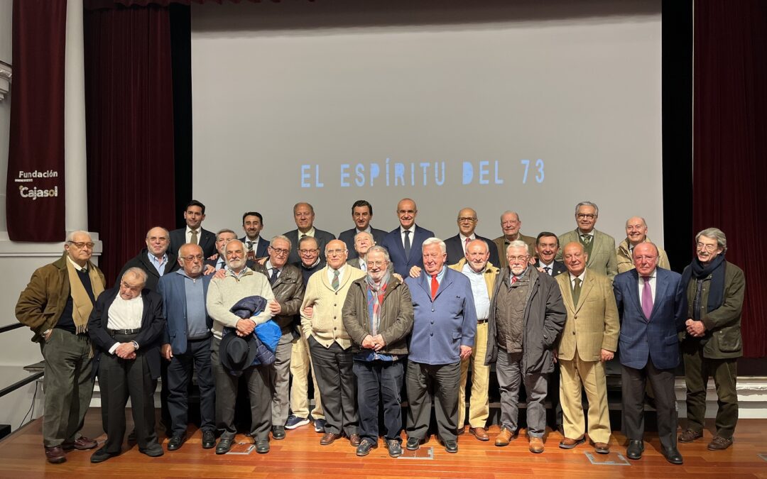 Presentado por el periodista Fran López de Paz, el acto de estreno de la película concluyó con una foto de familia de los integrantes de aquella primera cuadrilla sobre las tablas del salón de actos de la Fundación Cajasol.