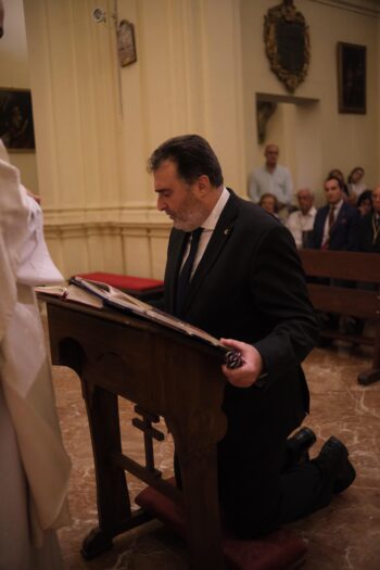 Una vez finalizada la eucaristía, el nuevo hermano mayor se dirigió a los presentes. Sus primeras palabras fueron de agradecimiento a su antecesor en el cargo, Jesús Resa, y a la junta saliente, a los que agradeció su trabajo en un «mandato complicado con decisiones difíciles».