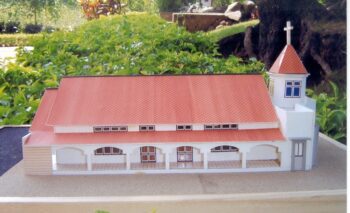 Maqueta de la iglesia construida en Umarpada (India).